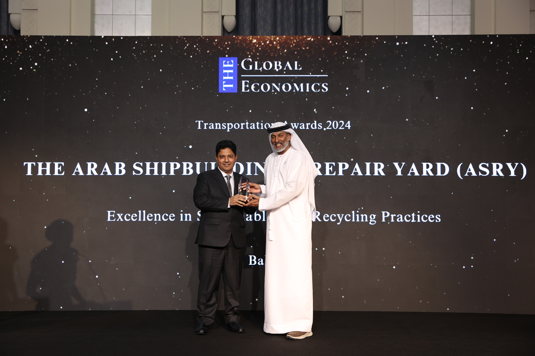 The Arab Shipbuilding and Repair Yard Company (ASRY) has secured two major honours at The Global Economics Awards 2024. ASRY’s Commercial Vice President, Sauvir Sarkar, and Quality Assurance and Control Manager, Hassan Al Saffar, accepted the awards during a ceremony held in Dubai earlier this month.